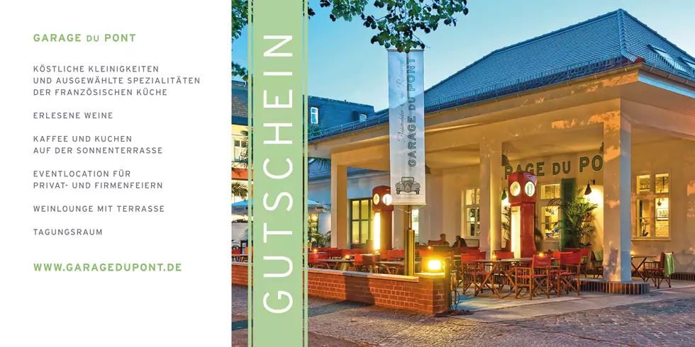 In der sorgsam restaurierten, historischen Tankstelle aus den 30er Jahren an der Glienicker Brücke treffen französische Lebensart und die Leidenschaft für historische Automobile aufeinander. Die mit vielen, liebevoll ausgesuchten Details ausgestatteten Räumlichkeiten sorgen für ein gemütliches Flair. Küchenchef Adam Richter und sein Team verwöhnen Sie mit Klassikern der französischen Küche und wechselnden saisonalen Gerichten. Ob für den kleinen Hunger zwischendurch, für ein gemeinsames Kaffeetrinken mit der Familie oder ein entspanntes Essen mit Freunden – unsere Speisekarte bietet für jede Gelegenheit das Richtige. Seien Sie unser Gast und genießen Sie die lockere Atmosphäre mit einer guten Portion französischen Flairs. Wir freuen uns auf Ihren Besuch.